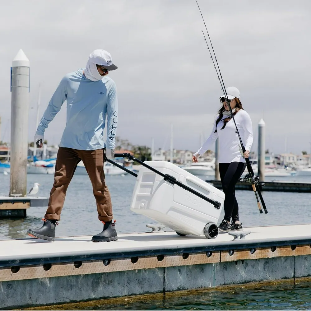 The Igloo MaxCold 110qt rolls right to your setup and stays there — no hauling, no melted ice by noon. Built to hold everything your group needs for a full day on the coast and keep it cold from morning to sunset. Big enough for the whole crew, tough enough to last all day in the Gulf Coast heat.